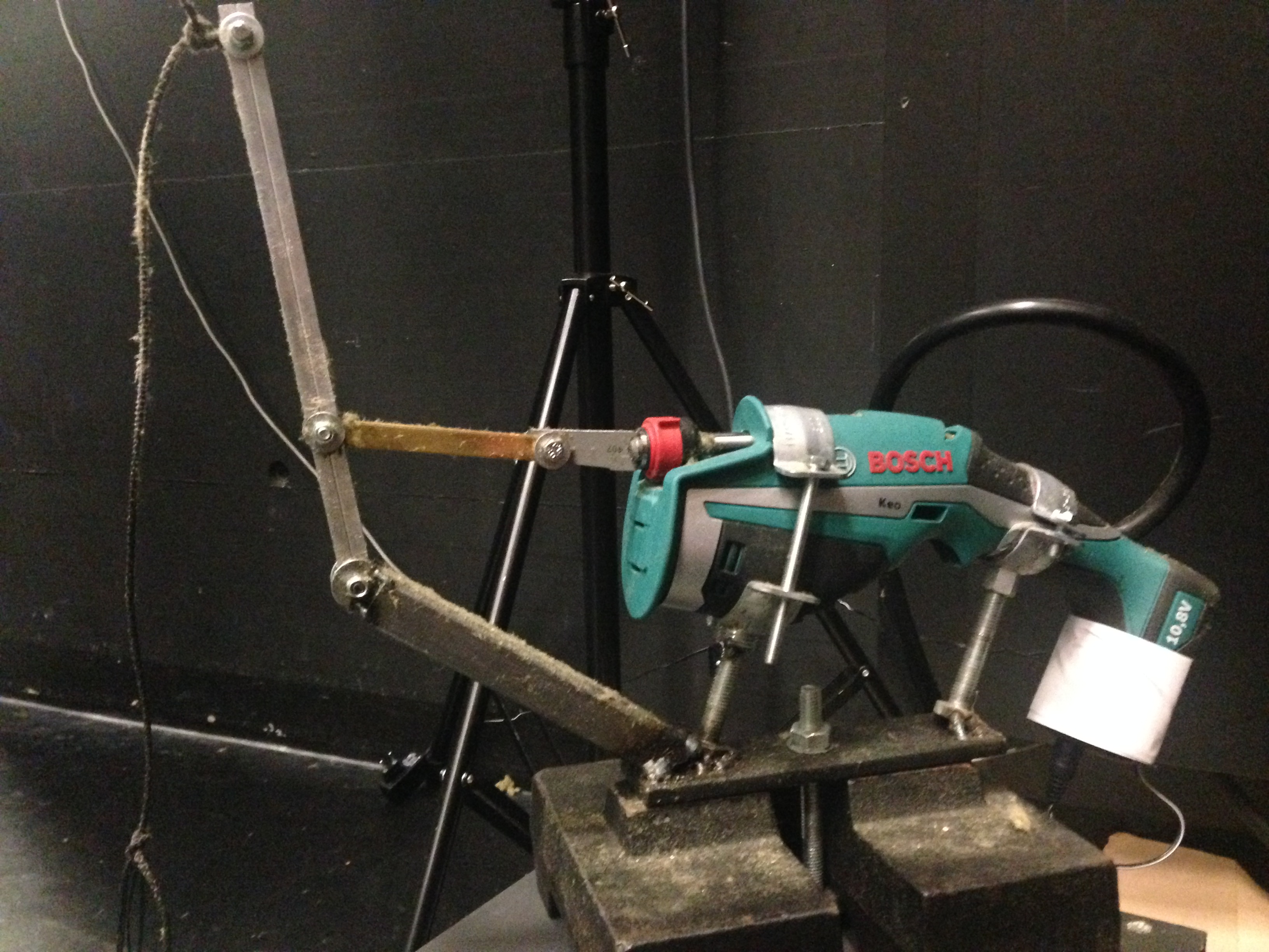 Commande DMX pour 3 scies sauteuses "Bosch" mettant en mouvement les murs du décor du spectacle “12 Hommes en colère” de la compagnie “Le Magnifique Théâtre”.