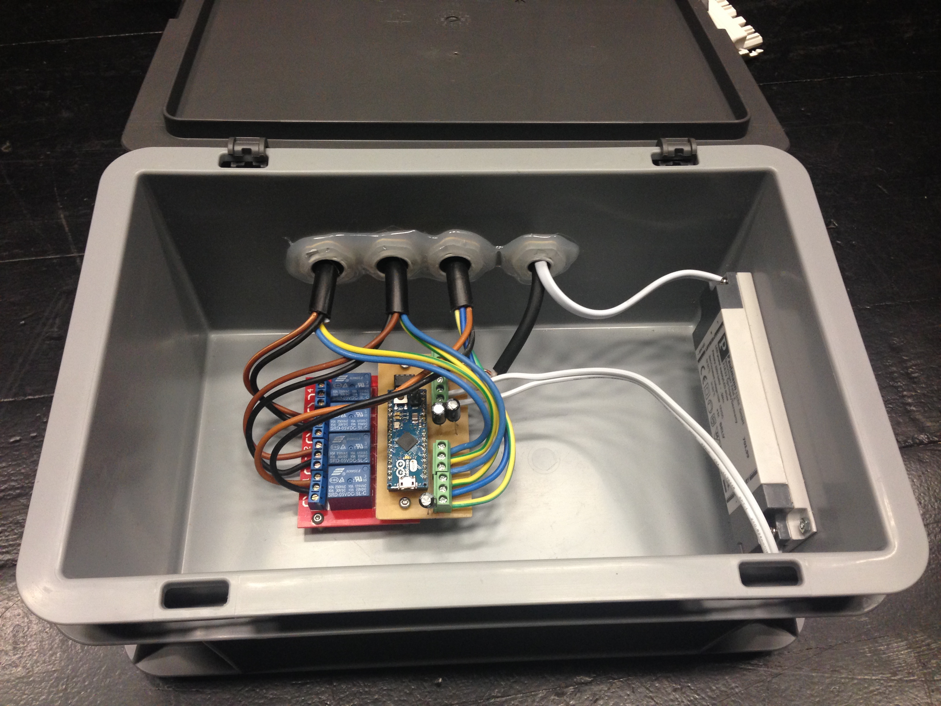 2 canaux DMX par appareil (coupe-circuit par relais + variation de la vitesse par PWM). L'Arduino simule simplement la gâchette.