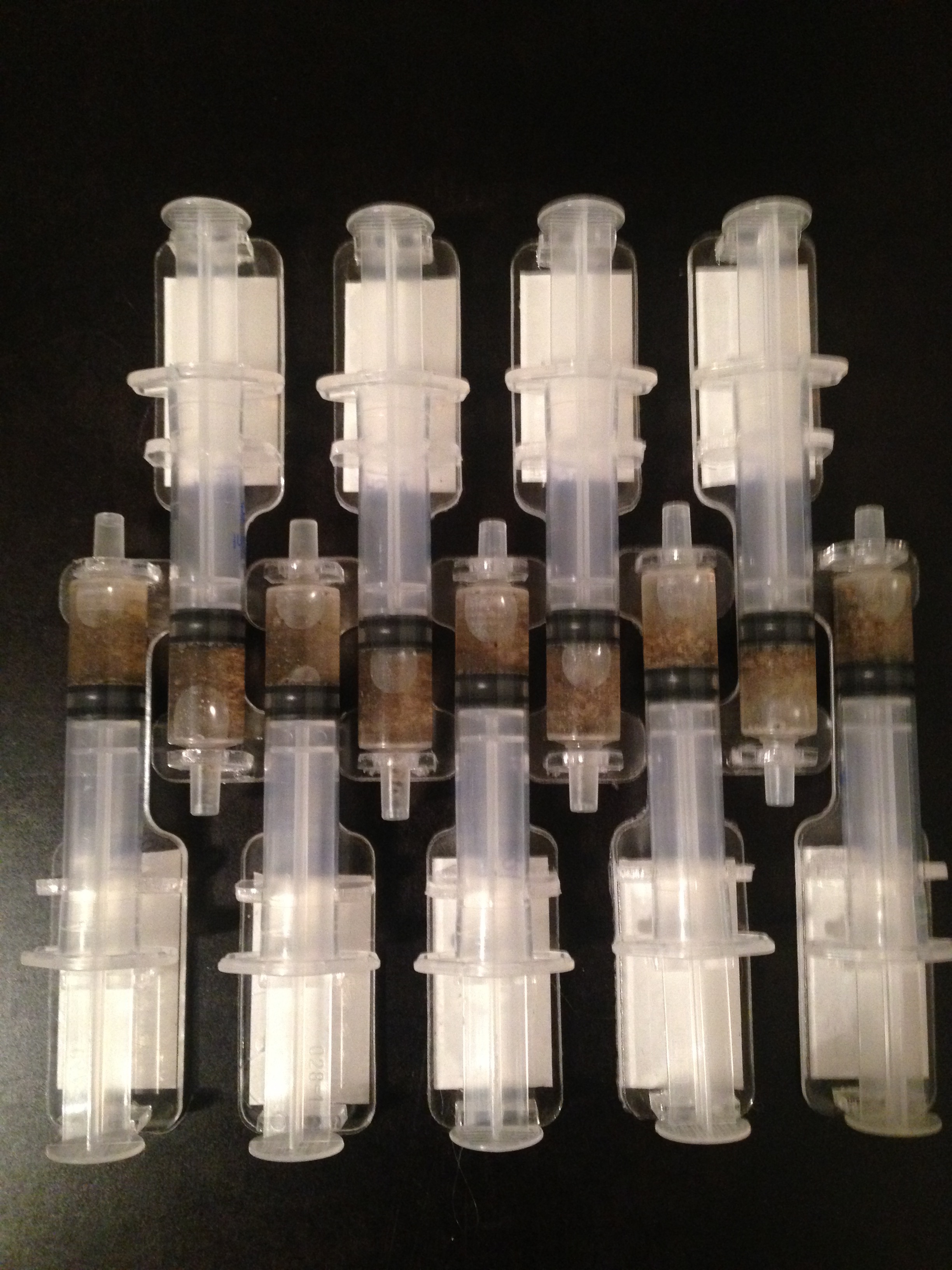 Construction de supports à seringue pour les besoins d’un jeu de rôle. Ces seringues contiennent du Ron-oh... Un drogue mortelle développée par ... bref... c’était pour une jeu de rôle.